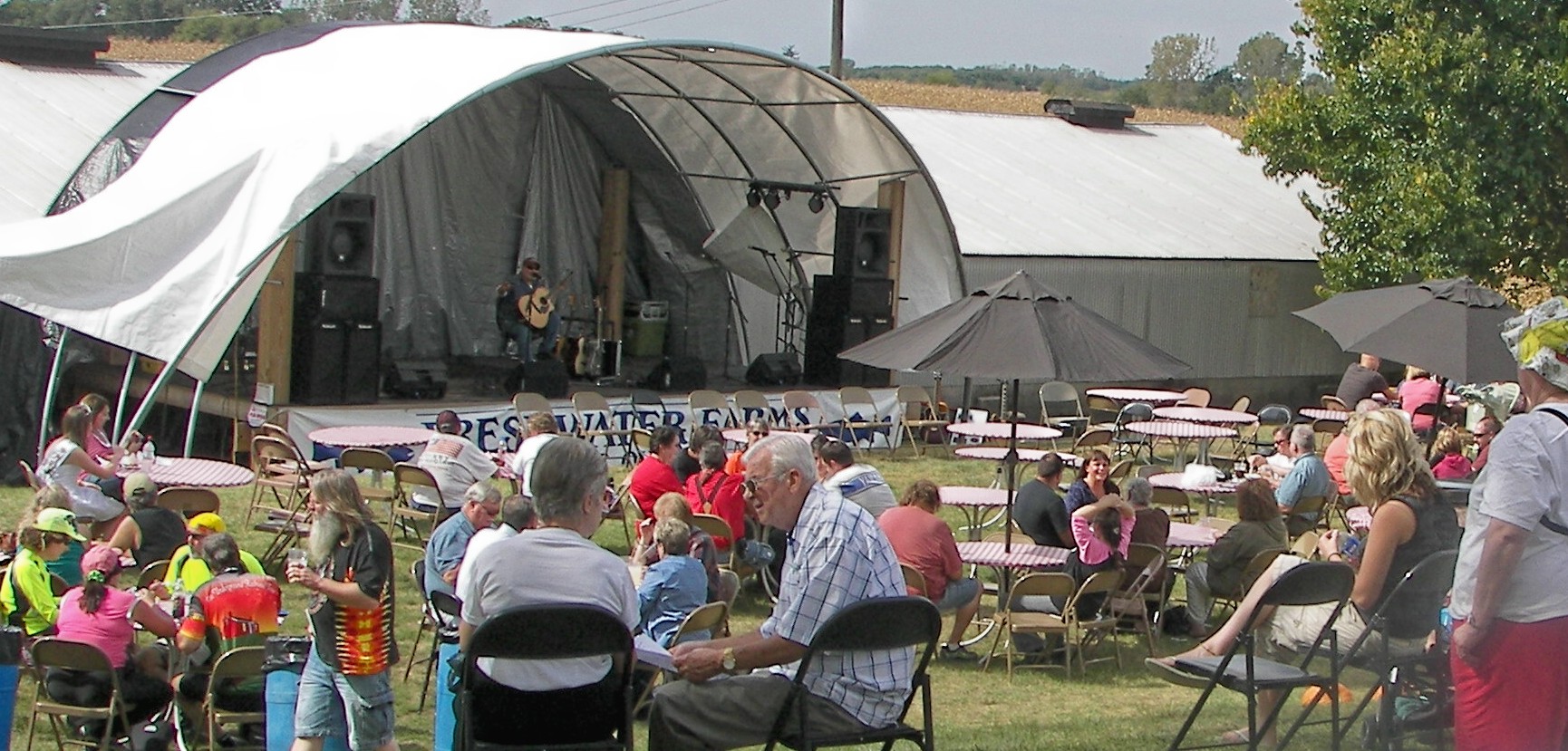 Not having spoiled my appetite I enjoyed a satisfying meal of grilled trout, green beans and coleslaw at the Ohio Fish and Shrimp Festival at Freshwater Farms of Ohio, just north of Urbana. For the second year in a row I happened to get in the serving line at the same time as one of my steady copywriting clients. So, a little business with pleasure.