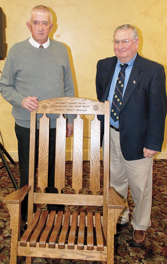 Bud Runyan, left, honored as the 2010 Rotary Farmer of the Year Award by Rotarian Chuck Havens.